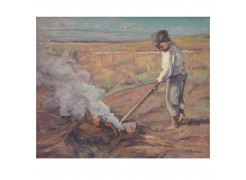 Camil Ressu occupies a central place in the history of Romanian interwar art, with a body of work that established a personal idiom at the intersection of realist observation and classical monumentalism. His training began in Bucharest under Gheorghe Mirea and continued in Iași with Gheorghe Popovici, later enriched by formative experiences in Munich and Paris, where engagement with the Western art milieu consolidated his mastery of drawing and the structural rigour of form. From the early caricatures in the Bucharest press, where incisive draftsmanship articulated social critique, to his large-scale compositions devoted to rural life, Ressu’s trajectory demonstrates a consistent engagement with the social and cultural realities of his era. His style emerged through a synthesis of Cézanne’s structural principles - visible in his constructive organisation of form - and the French realist tradition, filtered through a Romanian sensibility. The Romanian peasant became the central figure of his oeuvre, not depicted idly or decoratively but endowed with a solemn, monumental presence, marked by archetypal traits and a sense of ethnic continuity. In works such as Harvesters Resting and Ploughing, man is inseparable from nature, integrated into a balanced and sober universe where stillness and permanence acquire visual significance. At the same time, Ressu excelled as a portraitist, capturing not only the physiognomy but also the inner structure of his sitter. Portraits of Nina Arbore, Mihail Sadoveanu or the collector K. H. Zambaccian demonstrate compositional rigour and a profound understanding of visual dialogue, highlighted by what German critics termed as Blickkontakt - the exchange of gazes that establishes communication between subject and viewer. His self-portraits, from the early example in a red coat to later works, confirm this constant reflection on artistic identity. Through his rural subject, Ressu directly engaged with debates on national specificity in art, while consciously rejecting populist aesthetics or the semănătorist legacy, which he explicitly opposed. His vision of Romanian authenticity was not founded on the idealisation of folklore but on careful observation of everyday life, translated into a realist-constructivist idiom. This critical stance places him alongside his contemporaries, yet with a consistency that secured his position as one of the most authoritative voices of Romanian modernism. Critical reception was favourable even during the interwar decades, when his oeuvre was recognised as a benchmark in defining a national canon. His academic career, beginning in 1925 and culminating in his tenure as rector of the Bucharest Academy of Fine Arts, reinforced his influence as a mentor to younger generations. Ressu remains an artist whose work not only reflects but also transforms the tensions between modernity and tradition into a coherent visual discourse, firmly situated at the crossroads of Romanian art history and the international circulation of pictorial ideas.
