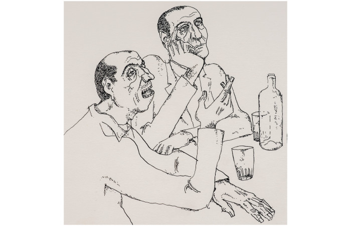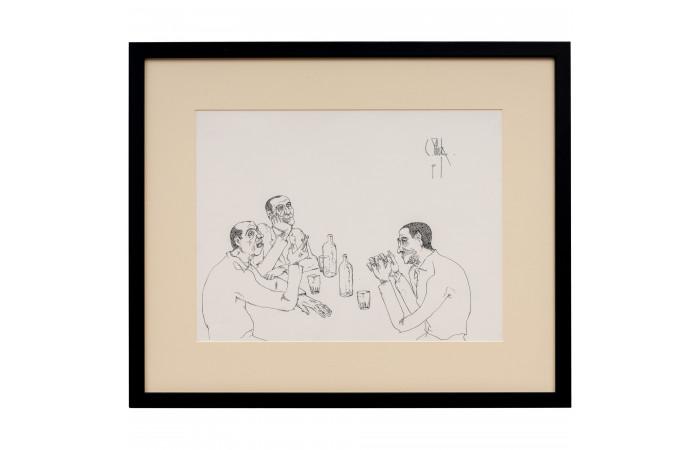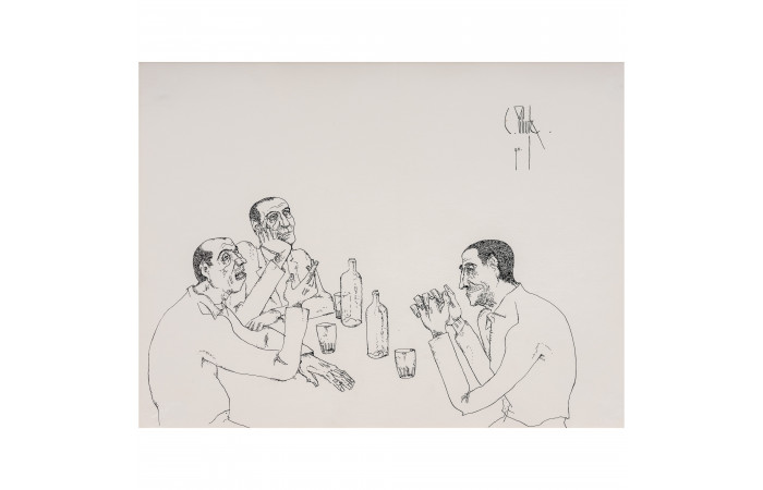 Constantin Piliuță is a Romanian artist with a profound interest for human types and attitudes who developed the pictorial language of the line as a primary element of expression in drawing, painting, book illustration and theatre set designs. A student of the Romanian master Alexandru Ciucurencu, he preserves the bold expressivity of his tutor’s art yet he chooses to continue without emphasising colour in his oeuvre. Instead, the playful, bohemian and nonconformist Piliuță creates elegant, apparently fragile silhouettes that border abstraction and emanate an impressive strength. He captures the world in heights that dominate through sobriety and plays with the revelries of everyday life through an economy of means that evokes inner clarity and harmony.