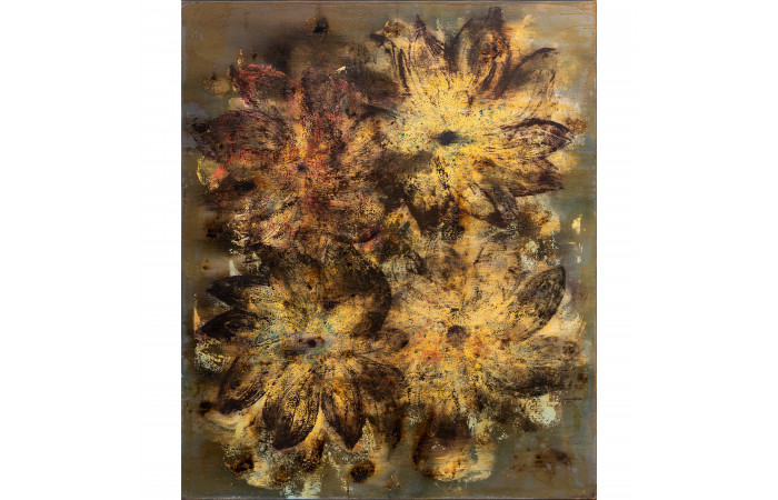 Dorin Crețu is a Romanian artist who studied painting at the University of Arts in Bucharest. As part of the 1980s generation of visual artists, Crețu briefly followed a career in teaching. He was awarded the Nicolae Grigorescu Art Institute Prize in 1980. Crețu’s paintings explore the limits of representation in art, situated at the intersection of abstract expressionism and minimalism. His compositions gather a multitude of geometrical shapes and floral structures through a unique technique of pigmentation and multiple risings. Crețu works with oil colours and acrylics, as well as with watercolours and charcoal, the latter emphasising a sense of transparency and movement on a compositional level, positioning his works at a unique periphery of both figurative and abstract art. Crețu’s works have been exhibited in Romania, France, Switzerland, Belgium, and his paintings are part of important collections, both private and public.