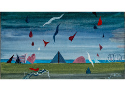 Florin Niculiu graduated from the National Institute of Fine Arts Nicolae Grigorescu in 1951. The Academy had the mission to prepare painters, sculptors, and graphic artists for the communist party’s program, in power at the time in Romania. Some of Niculiu’s teachers were one of the most important artists like Camil Ressu, Ion Steriadi, and Nicolae Dărăscu. From 1952 to 1956, he worked on mural paintings in Buzău, but his work was often at odds with his continuous fight against the formalism of the visual artists’ union. He was seen as an author of still lifes and landscapes that reflected emotional depression and pessimism. While always focused on reality, Niculiu’s work nonetheless transcends it and accesses the world of symbols where the painter’s imagination is depicted in a poetic and contemplative manner.