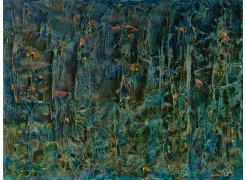 Georges Guv was among the first generation of artists educated at the Lebanese Academy of Fine Arts, where he studied between 1946 and 1948. Having settled in Lebanon in 1923, he was first educated by the Jesuits before combining his artistic practice with a civil career as both lecturer at the academy and manager of a paper mill. His decision to remain on the periphery of Beirut’s dominant artistic milieu lent his work a notably introspective and self-contained character. Guv’s pictorial language sought to give form to the memory of the Armenian tragedy and to the existential anxieties of the modern world. His art oscillates between naïve figuration and abstraction, not as stylistic affectation but as a means of sublimation, a disciplined effort to preserve emotional distance and resist overt pathos. For him, painting was an act of exorcism, a private method of transforming anguish into formal clarity. A key moment in his career was the exhibition of the Rock and Water series at Galerie de l’Odéon in Paris in 1963, where forty paintings exploring the dialogue between fluidity and permanence were presented. Among them, Rock and Sea stands out as a synthesis of Guv’s preoccupations with transformation, endurance and the sacred order of nature. Through this work, he investigated the interaction between the visible and the elemental, translating the movement of water against rock into a meditation on creation and dissolution. The series achieved remarkable critical and public success, with most of the paintings sold on the day of the opening, confirming the universal resonance of his vision. From the early 1960s through the 1970s, Guv exhibited in major Beirut galleries such as Pikal, Alecco Saab, Cassia, Dar el Fan, and Modulart, as well as abroad in Paris, Armenia, Italy, and Germany. His recurring series of underwater compositions, in which aquatic flora become metaphors for vitality and dissolution, represents one of his most coherent thematic explorations. In these works, water appears as both divine medium and metaphysical principle, embodying the tension between creation and withdrawal. Through this poetic discipline, Guv shaped a body of work that remains an inward and quietly resonant contribution to post-war Lebanese modernism.