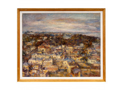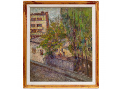 Gheorghe Popescu, also known as Ghiță Popescu, remains a relatively under-documented figure in twentieth-century Romanian art, despite his substantial activity as a painter and muralist. His oeuvre frequently engages with the theme of the city, portraying urban spaces in transition through a dense, textured handling of paint. In his depicting of urban views, Popescu emphasised the interplay of architectural volumes, vegetation, and atmospheric light, revealing an interest in both structural composition and chromatic vibration. Although detailed records of his career are scarce, these paintings attest to his ability to translate the immediacy of lived experience into a coherent pictorial language situating him among the artists attuned to the evolving physiognomy of Romanian urban life.