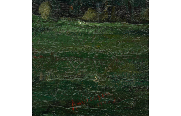 A brief but significant encounter with the French artistic milieu, including the Barbizon environment and its commitment to painting from nature, sharpened his sensitivity to tonal construction and surface economy. Rather than prompting stylistic assimilation, this experience reinforced an independent idiom marked by austerity, introspection and a pronounced ethical gravity. In contrast to the lyrical naturalism favoured by many of his contemporaries, Andreescu’s painting resists decorative appeal, favouring compositional concentration and a reflective engagement with the motif.
