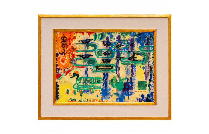 Ţuculescu's early work was marked by the influence of figurative expressionism and the redeployment of themes and subjects from Romanian folklore. As he moved toward abstract expressionism, he continued to make use of decorative elements originating in the folk art of his native region in Southern Romania, while expanding his range into oneiric landscapes and evocative portraits.