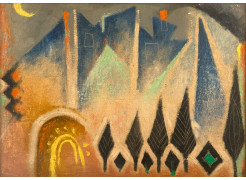 Naim Ismail occupies a central position within the development of Syrian modern art after independence. Educated in Istanbul and subsequently in Rome, he formulated a visual vocabulary that fused geometric abstraction with iconographic references drawn from Islamic ornament and scenes of everyday life. His painting balanced figuration and symbolism, frequently embedding subtle socio-political commentaries that reflected his preoccupation with national identity and the collective experience of modern Syria. Upon his return to Damascus, Ismail assumed a dual role as artist and cultural administrator. He worked as artistic director for a number of publications before being appointed Director of Fine Arts at the Syrian Ministry of Culture, a position he held until his death in 1979. In parallel with his studio work, he completed several large-scale public commissions, among them the façade of the Trade Union Building in Damascus and the monumental decoration of the Euphrates Dam at Tabqa. His wide-ranging production—which includes drawings, mosaics, frescoes and publication designs—reveals a consistent pursuit of equilibrium between aesthetic structure and social message. Throughout his career, Ismail maintained an ideal of synthesis in which abstraction and vernacular motifs coexisted within a distinctly humanistic framework. His works are represented in major institutional and private collections, including the Barjeel Art Foundation and the Atassi Foundation, confirming his enduring significance in the visual culture of twentieth-century Syria.