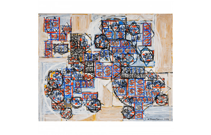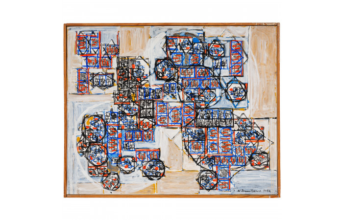 Educated at the Academy of Fine Arts in Bucharest, Natalia Dumitrescu emerged as one of the most distinctive Romanian painters of her generation. She graduated the Academy of Fine Arts in Bucharest. Her lifelong marriage with the Romanian sculptor Alexandre Istrati made them an important artist couple of the time. They moved to Paris in 1947 where they shared the studio with Constantin Brâncusi with whom they are buried in Montparnasse Cemetery. Her artist friend played an important part in Natalia Dumitrescu’s recognition and the publication of her monography in 1986. In Paris she was part of the Réalités Nouvelles after the WWII. Wassily Kandinsky had a major influence on her practice which can be seen in how she created abstract forms with small, coloured squares on her canvases. She received the Kandinsky Prize in 1955. Her method was austere and before moving to France she exclusively used black and white. While her strict austerity did not change and the geometric modulations of squares, grids, rectangles and diamonds remained, she familiarised herself with colour theory and started to use them on her works as well.