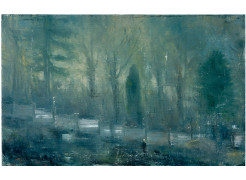 Simion Cantemir Hauși (b. 1976-) is an internationally recognised visual artist from Romania who works primarily with painting. In 2003, he graduated from the University of Art and Design in Cluj. Hauși’s practice immerses its subjects in an eerie aesthetic that is highly compelling and cinematically expressive. His depictions of the natural world reveal the complexity of landscape and its hauntedness in the present–in plays of light and darkness, and often cold greens and blues, skillfully employed to create intricate narratives. Atmospheres of disturbance and intrusion, intimacy and surveillance, seem to reach beyond the canvas. For over a decade, Hauși has exhibited widely, with solo showcases in spaces such as Galerie Barbara Thumm (DE), Tajan (FR), Faye Flemming / Arquebuse (CH), De Muse Gallery (BE), or the Art Museum in Cluj (RO). Hauși has participated in international showcases such as the Art Encounters Biennial in 2017 in Timișoara and the Prague Biennial in 2009, as well as important survey exhibitions of Romanian art across Europe.