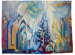 Simone Baltaxé received her artistic education in Paris, first attending the School of Applied Arts before continuing at the École nationale supérieure des Beaux-Arts under the guidance of Jean Souverbie. The disruption caused by the Second World War led her to Lyon, yet her return to the French capital in 1946 reaffirmed her place within the post-war generation of artists who redefined the relationship between modernism and craftsmanship. Her relocation to Lebanon in 1951 marked a decisive transformation in her artistic development. The Mediterranean light and material richness of Beirut infused her practice with a renewed sensitivity that culminated in her engagement with tapestry, following her encounter with the master weaver George Audi in 1964. Baltaxé’s participation in the Salons du Printemps at UNESCO and in the Salons d’Automne at the Sursock Museum placed her at the heart of Lebanon’s vibrant artistic milieu during the 1950s and 1960s. Her solo exhibitions at Gallery One in 1968 and Modulart in 1974 confirmed the recognition of her singular approach to textile-based abstraction and chromatic construction. Her work, situated between painting and weaving, explores the tactile and spatial qualities of the surface through rhythm, density, and depth. Today, her works are housed in major public and private collections, including the Sursock Museum in Beirut, the Centre Pompidou, the Musée d’Art Moderne de Paris, Mathaf: Arab Museum of Modern Art in Doha, and the Saradar Collection. The recent institutional revival of interest in her oeuvre highlights the significant contribution of women artists whose practices extended the vocabulary of modernism beyond its European centre.