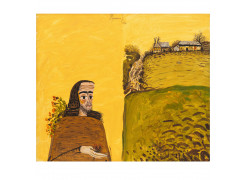 With an unmistakable remarkable symbolic language, Sorin Ilfoveanu draws and paints in an all-consuming freedom of expression through suggestion and mystic transference. His universe is encrypted in primitive signs from the subconscious matrix of archaic heritage and with a certain nobleness and refinement characteristic of the model of the Byzantine icon. He discovers his originality of style under the guidance of Corneliu Baba and is part of a generation of Postwar Romanian artists, such as Ștefan Câlția and Sorin Dumitrescu, who promoted a renewed sense of spirituality in relation to the materialism of contemporary culture. He participated in the Venice Biennale in 1987 and his works are exhibited in important museums and included in private collections around the world, from Paris to Tokyo, from Bucharest to Oslo and Perugia.
