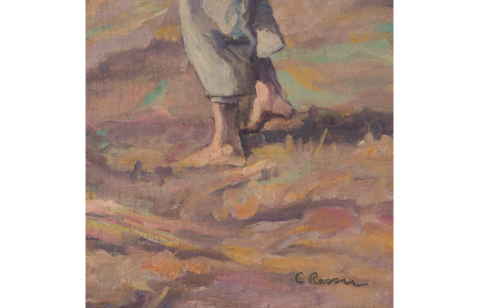 Camil Ressu occupies a central place in the history of Romanian interwar art, with a body of work that established a personal idiom at the intersection of realist observation and classical monumentalism. His training began in Bucharest under Gheorghe Mirea and continued in Iași with Gheorghe Popovici, later enriched by formative experiences in Munich and Paris, where engagement with the Western art milieu consolidated his mastery of drawing and the structural rigour of form. From the early caricatures in the Bucharest press, where incisive draftsmanship articulated social critique, to his large-scale compositions devoted to rural life, Ressu’s trajectory demonstrates a consistent engagement with the social and cultural realities of his era.