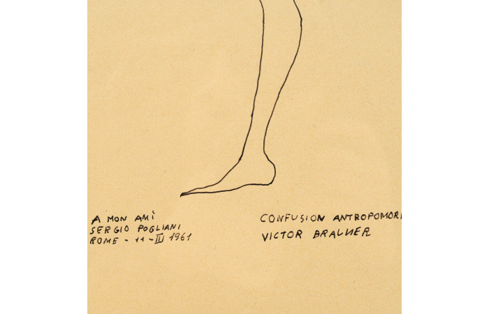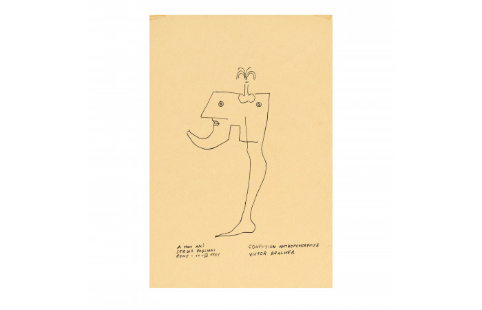 Signed, dated, titled and dedicated on the front lower part: "A mon ami Sergio Pogliani; Rome 11 III 1961; Confusion antropomorphise; Victor Brauner"