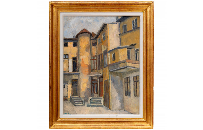 Eliza Popa, born in Bucharest in 1967, studied painting at the National University of Arts in Bucharest under the guidance of Ion Sălișteanu and has been a member of the Union of Visual Artists since 1997. Her oeuvre is defined primarily by landscape, a genre she explores through plein-air practice and a sustained dialogue with both urban and rural motifs. The artist constructs her compositions with a marked tendency toward geometric structuring, balancing rigorous drawing with a chromatic register that favors cooler tonalities. Popa avoids anecdotal or spectacular subjects, instead focusing on the silent persistence of streets, houses, and corners of the city, depicted as if suspended in time. The absence - or discreet suggestion - of the human figure contributes to the atemporal character of her imagery, while her control of light underscores the painterly dialogue between structure and atmosphere. Alongside landscapes, she has also developed still lifes, which differ through a warmer palette and softer compositional rhythm, pointing to the duality of her pictorial language.