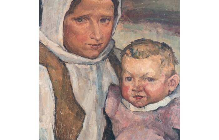 His style emerged through a synthesis of Cézanne’s structural principles - visible in his constructive organisation of form - and the French realist tradition, filtered through a Romanian sensibility. The Romanian peasant became the central figure of his oeuvre, not depicted idly or decoratively but endowed with a solemn, monumental presence, marked by archetypal traits and a sense of ethnic continuity. In works such as Harvesters Resting and Ploughing, man is inseparable from nature, integrated into a balanced and sober universe where stillness and permanence acquire visual significance.