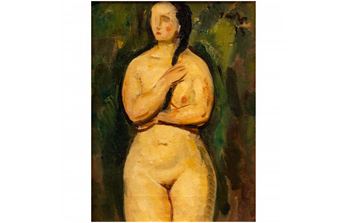 Reproduced in "N. N. Tonitza", Barbu Brezianu, Editura Meridiane, 1986, cat. no. 84, under the title "Nud de fată pe fond verde";