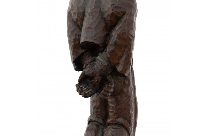 His oeuvre developed along two interconnected directions. One addresses social and historical realities through representations of miners, forestry workers and rural communities, as well as through public monuments conceived within the ideological framework of the post war period. The other draws on archaic folklore and mythological imaginaries from Maramureș, articulated through symbolic figures and collective memory rather than narrative illustration. Wood remained his primary medium, valued for its structural force and cultural associations, though stone and bronze were employed in major commissions. Vida exhibited widely in Romania and abroad, including participations at the Venice Biennale, and received significant institutional recognition through state awards, leadership roles within the Union of Plastic Artists and election as a corresponding member of the Romanian Academy. His work continues to occupy a stable position within museum collections and the secondary art market, where it is regarded for its synthesis of modern form and local cultural continuity.