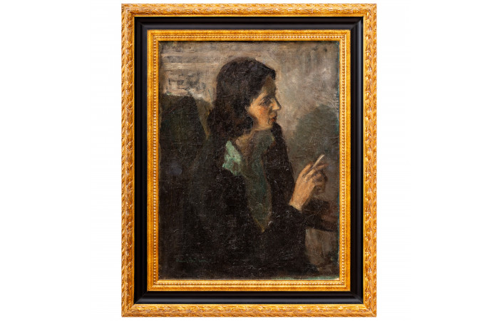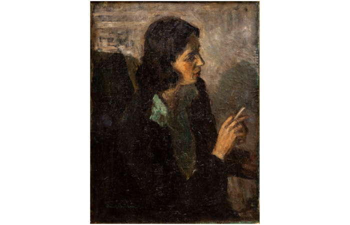 The present work, depicting a woman in a relaxed pose with a cigarette, is especially significant. Such imagery introduced a new iconography into interwar Romanian art, where female figures were no longer contained by the traditional roles but instead came to embody modernity, independence, and subtle social critique. Through this composition, Băeșu aligned himself with contemporary European currents while preserving the intimacy and sincerity that define his style.