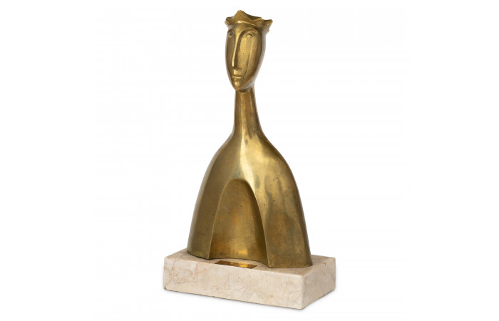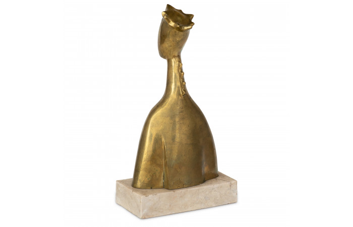 Intertwining between classical motifs and modern sculptural forms, Irimescu’s works – cast in diverse materials such as bronze, marble, wood, gypsum, or ceramics – tackle the themes of motherhood, beauty and truth as philosophical categories, history, mythology, religion, and music. In works such as Maternity, the artist’s distinctive style is visible in an unique approach to human bodily shapes through distortion, fragmentation, and elongation, constructing alluring choreographies of the corporeal.