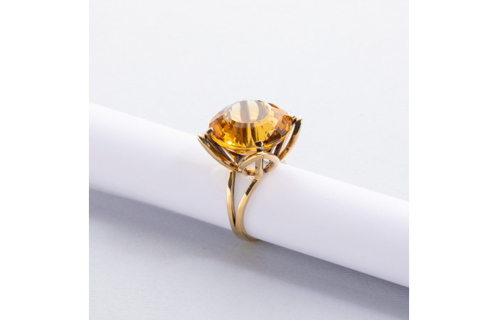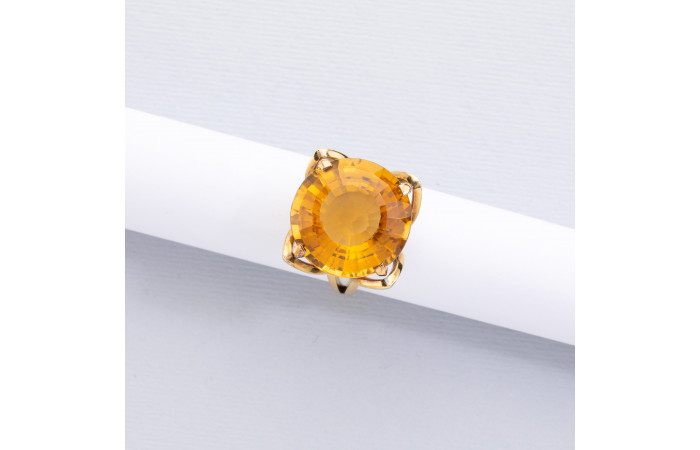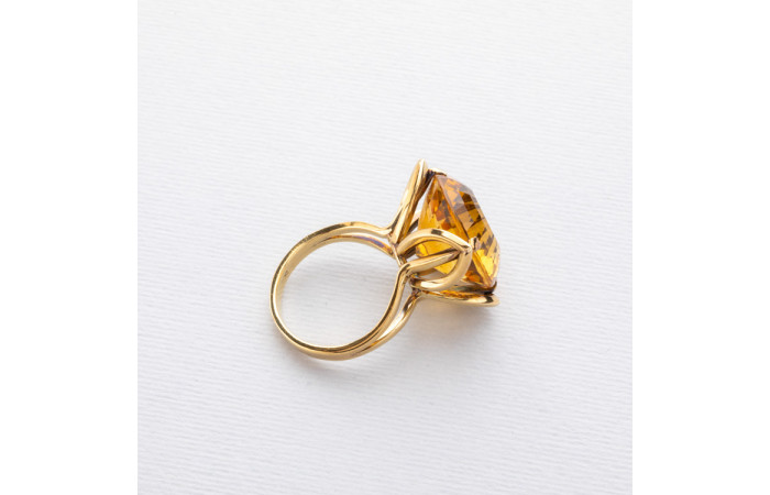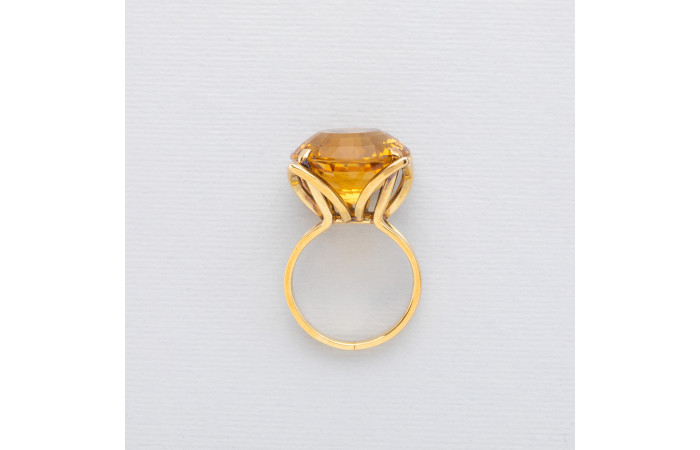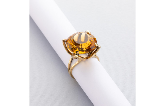 Ring with a natural citrine supported by four stylized yellow gold petals