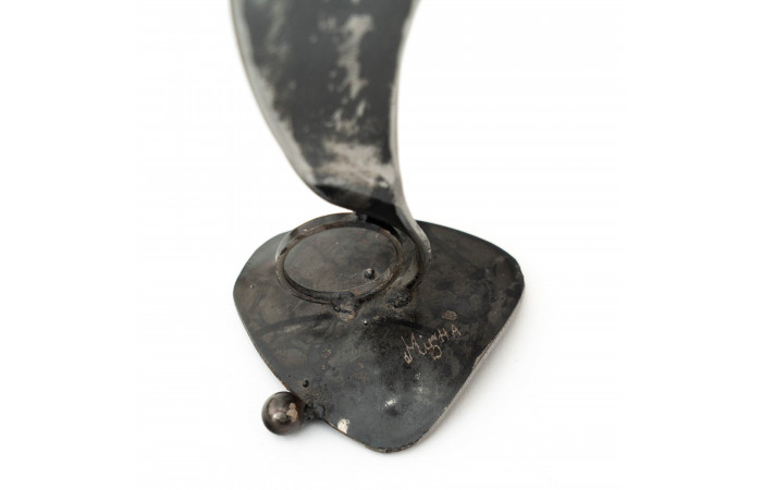 Her artistic language unfolds at the intersection of sculpture and drawing, with metal as the primary medium. In her hands, metal operates both as structural armature and as linear sign. It is cut, bent and assembled to articulate contour, rhythm and spatial tension, translating the act of drawing into three dimensional form. Whether conceived on a modest scale or in more expansive formats, the works are characterised by precision of construction and a measured engagement with the physical properties of the material.