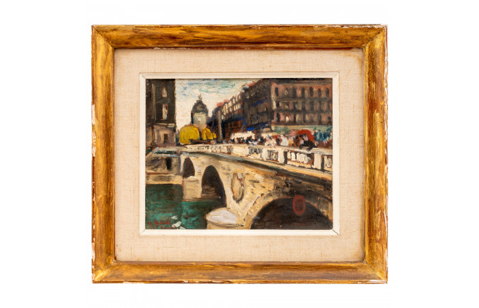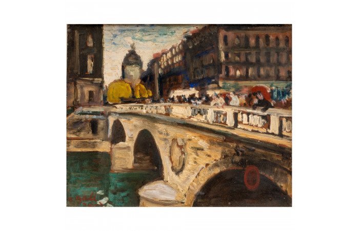 François Gall (b. 1912, Kolozsvár/ Cluj-Napoca, Austro-Hungarian Empire/ Romania – d. 1987, Paris, France) was an Impressionist painter, highly influenced by Edgar Degas in style and chosen subject matters. He studied at the Royal Academy of Arts in Rome, as well as at the National Academy of Fine Arts in Paris with André Devambez. Gall painted landscapes, portraits, as well as still life. Many of his works depict scenes of modern everyday life in which women perform activities such as shopping, sewing, tending to their children, ballet dancing, or simply at leisure. A distinctive feature of The Square is the way in which the artist used a wide palette of colours to create a vivid and lively atmosphere of the market. Gall was the recipient of many prizes during his lifetime, and most notably of the Chevalier dans L’Ordre des Arts et des Lettres, awarded by the French Government. His works were exhibited in Budapest, London, Paris.