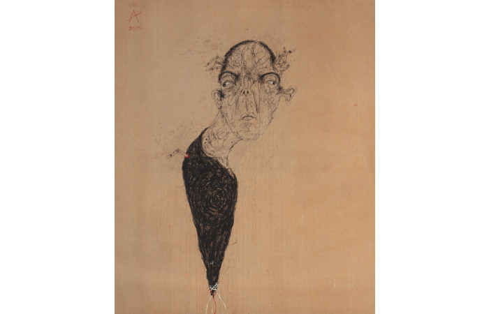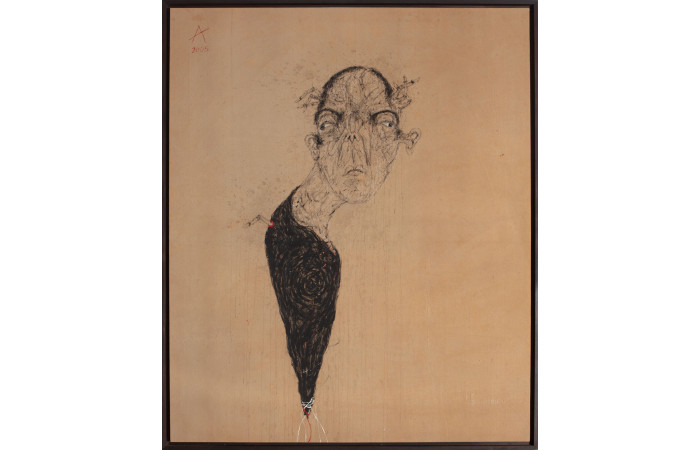 His practice is centred on the human figure, rendered through grotesque yet introspective portraits that subvert conventional ideals of beauty. The distorted anatomies and theatrical poses convey a psychological truth rather than a physical likeness, exposing inner tensions between fragility and defiance. The figures are not mere caricatures but mirrors of the artist’s own experiences—embodiments of alienation, loss, and resilience. As the poet Adonis noted, their disfigurement becomes an aesthetic of protest and revolt.