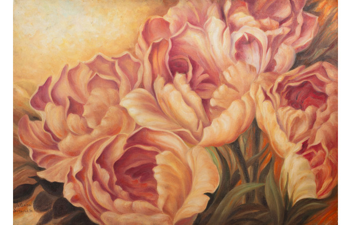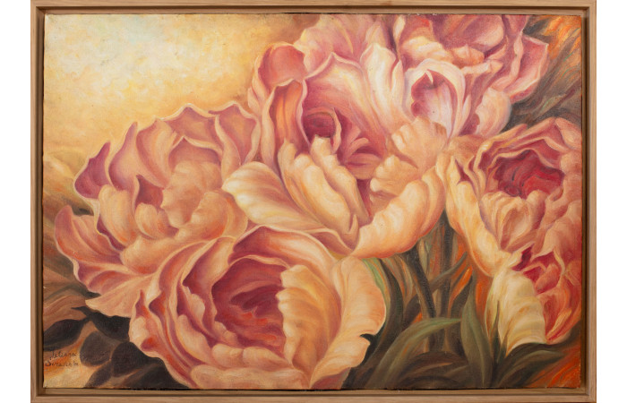 Juliana Seraphim forged a distinctive visual vocabulary shaped by the experience of exile and the imaginative freedom of surrealism. After relocating to Lebanon with her family during the 1948 Palestinian displacement, she studied painting under the guidance of Jean Khalifé before enrolling at the Lebanese Academy of Fine Arts. Subsequent training in Florence and at the Royal Academy of San Fernando in Madrid refined her understanding of European modernism and deepened her sensitivity to Mediterranean light and form.