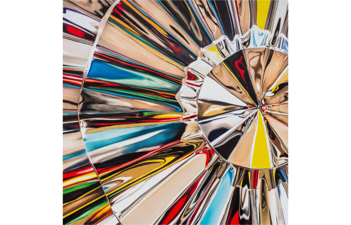 Medium: laser-cut dibond print with hand-painted gold gouache details