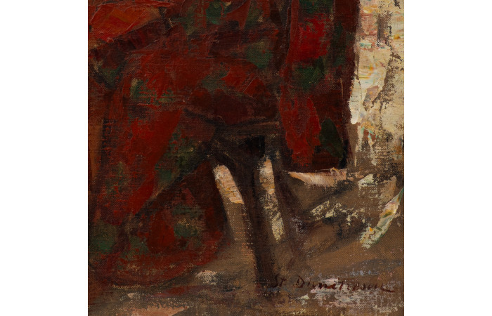 Thematically, his paintings often depict the quotidian lives of villagers, miners, and of a then emerging middle and intellectual class. The social critique that the works carry with them is reflected in his balanced choice of colours and robust contours. After World War I, marked by the tragedies of the conflict, Dimitrescu used his paintings to explore the effects of war in people’s everyday lives. His compositions continued to change throughout his career, and later in his life he began to use darker tones as well as less detailed, mainly white backgrounds.