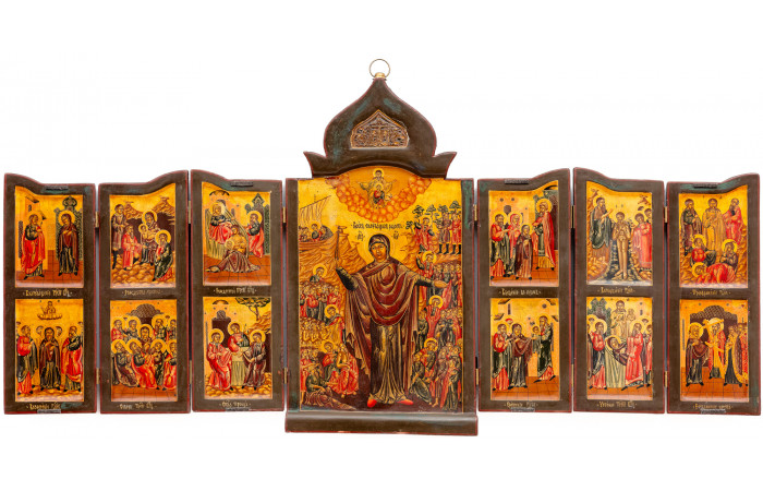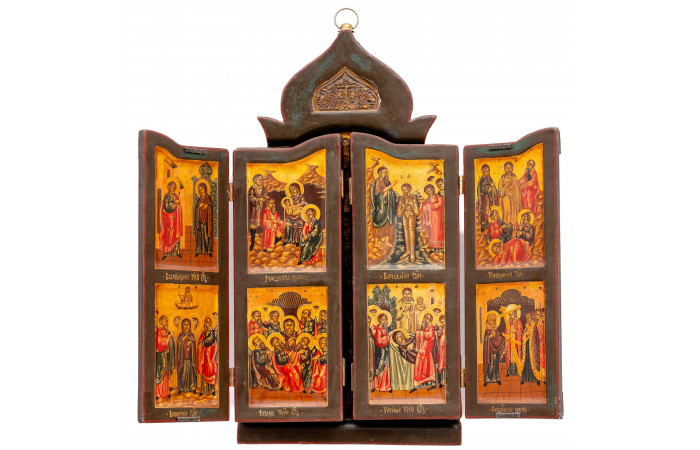 Wooden iconostasis "The Virgin Mary with Saints and the Twelve Great Feasts" (Iconostas din lemn "Maica Domnului cu Sfinții și 12 Mari Sărbători")